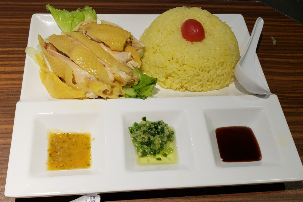 poached chicken and seasoned rice, served with chilli sauce